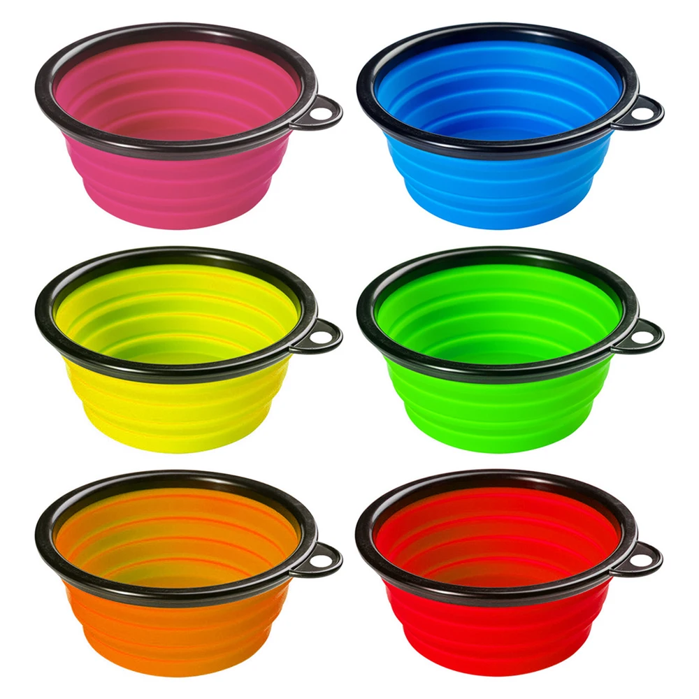 En venta 1 Uds 6 color plegable borde negro y el gato recipiente para mascotas beber tazón alimentación tazón de plástico al aire libre viajes colgar para comida J9jQYBZGk
